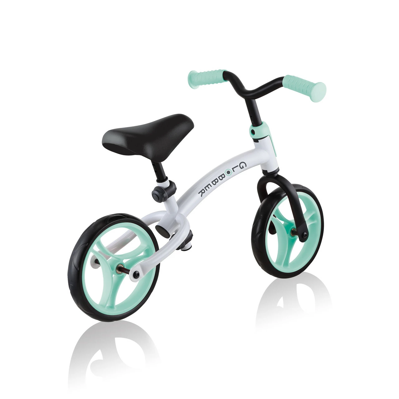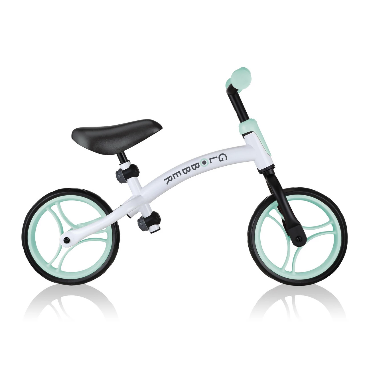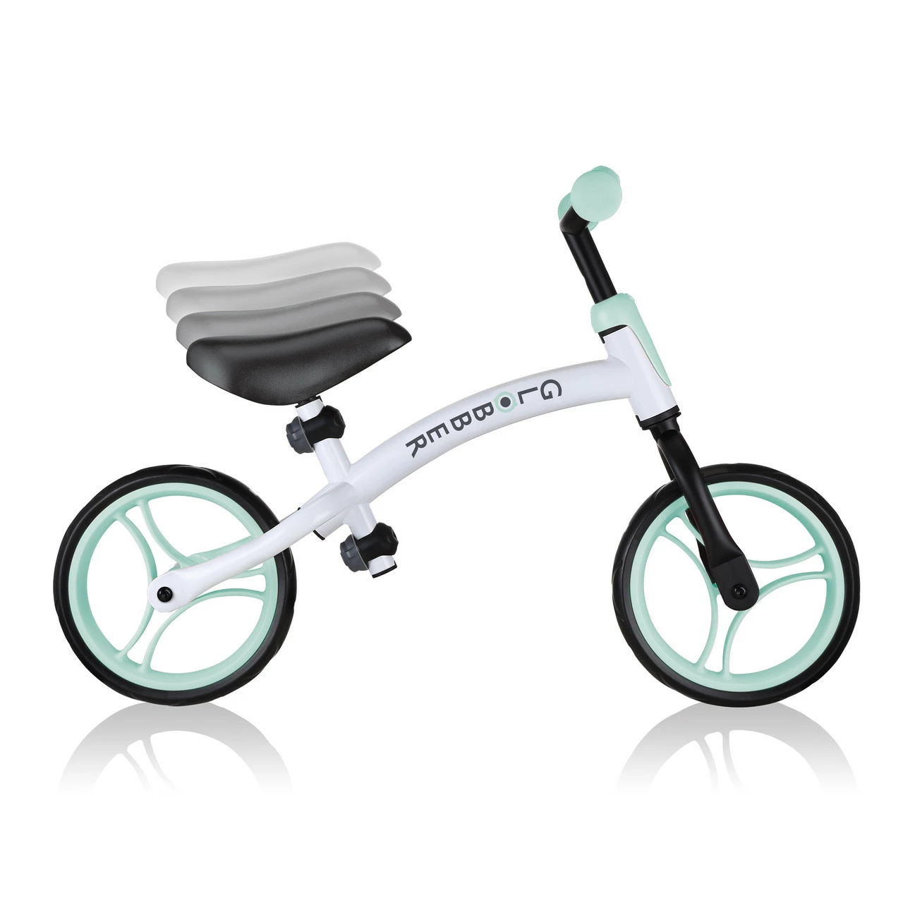 Globber GO BIKE DUO Compact, Adjustable Balance Bike for Toddler aged 2 to 5+ Globber is an award-winning brand, recognised for its innovative designs and unmatched functionality across its toddler scooters with seat, balance bikes & tricycles, kids scooter, adult scooters, stunt scooters and electric scooters for kids, teens and adults. Globber was recently awarded the Most Innovative All-Ages Scooter Brand 2020 in the parents & baby category of LuxLife, a well-recognized luxury lifestyle magazine in the U.K.! FIRST BALANCE BIKE – GO BIKE DUOs toddler bike is designed to teach children all essential motor skills and balance before transitioning to their first pedal bike thanks to its 2-stage reversible frame and the transformable dual rear wheel, to always adapts to the toddlers needs. WELL-DESIGNED TODDLER BALANCE BIKE – Coming with a well-designed, 2-stage robust steel frame with a low and a high position and its transformable dual rear wheel allowing the product to switch from low frame position to high frame position and remove one of the 2 rear wheels when your child master his / her balance for better adaptability! ADJUSTABLE BALANCE BIKE FOR TODDLERS – 2-height adjustable and curved handlebars (43cm / 48cm from the ground) with soft, and highly durable TPR ergonomic grips and an 8-height adjustable seat (4 per frame position) with soft, anti-slip TPR, for maximum product usage for kids aged 2+ to 5yo HIGH-QUALITY BALANCE BIKE WHEELS – 2 highly resistant 8.5inch EVA foam wheels for puncture-free rides. EASY TO CARRY BALANCE BIKE – Ergonomic handle, made from soft TPR, is integrated in the rear of the seat to easily carry the GO BIKE DUO wherever you go. Dimensions: Weight: 2.58kg Handlebar heights: 44.5cm / 47.5cm from the ground Low frame position: 28.3cm / 30.5cm / 32.8cm / 35.1cm from the ground High frame position: 31.3cm / 33.5cm / 35.7cm / 38.2 from the ground