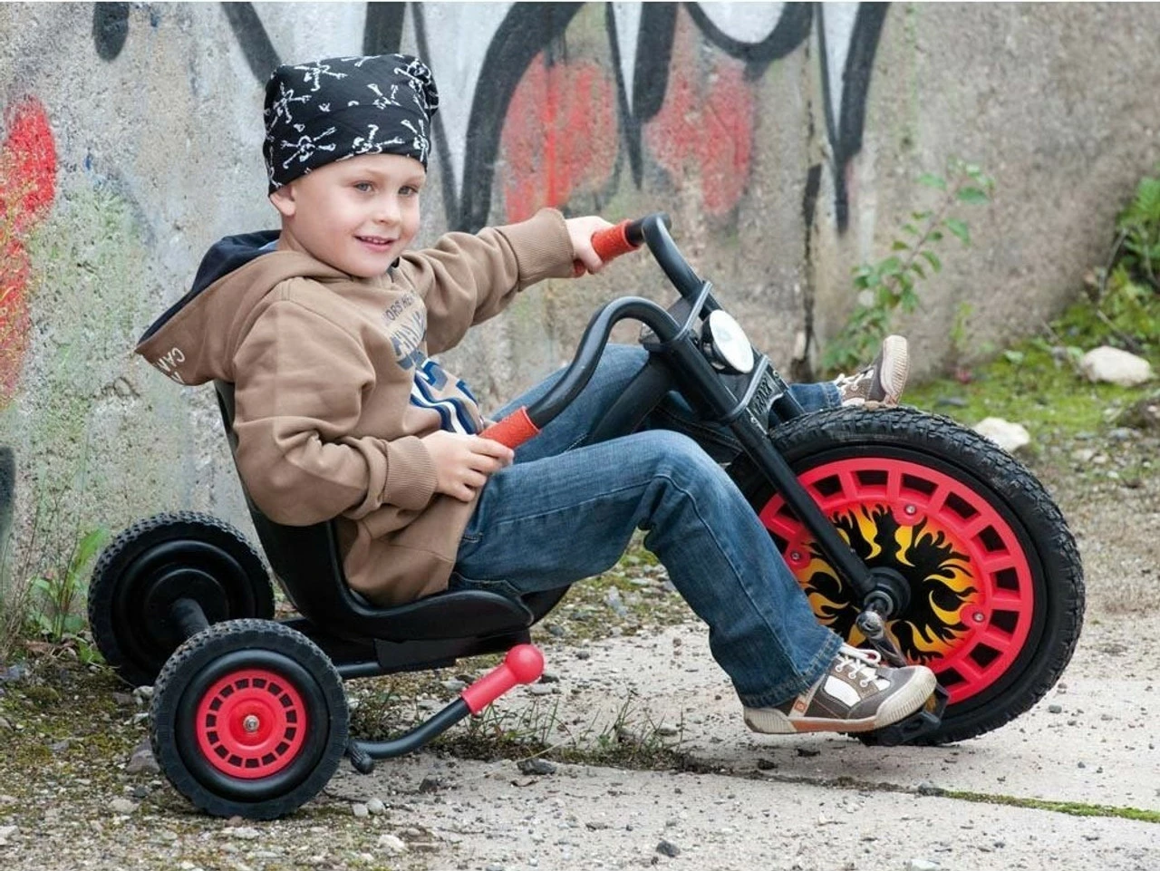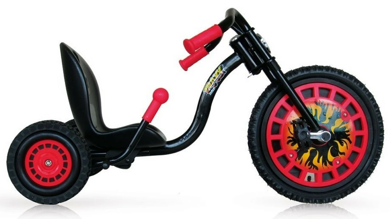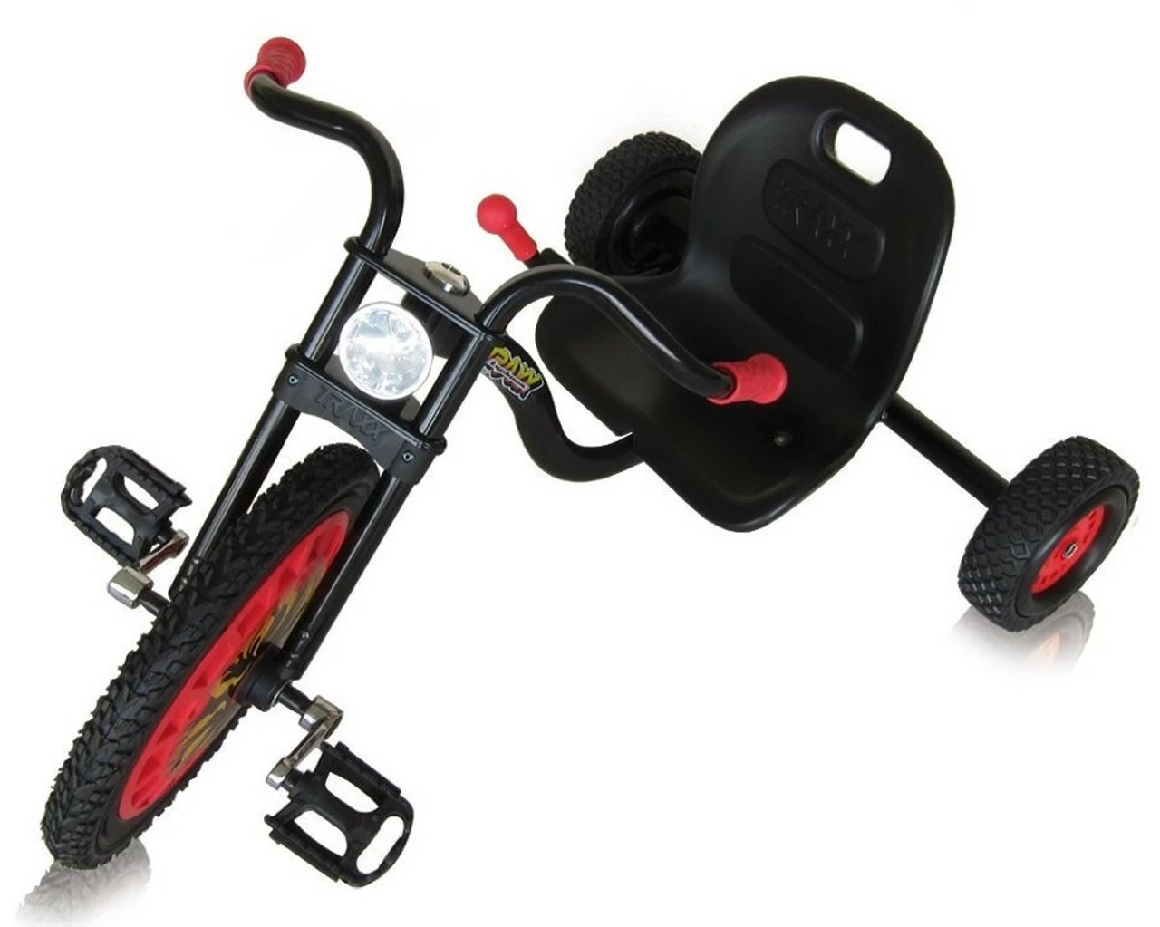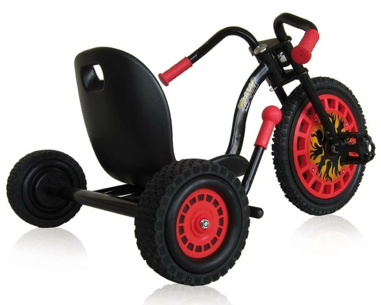 Hauck’s Typhoon Go Cart is a 3-wheeler low ride that is great for negotiating on smooth or tricky roads. The ape-hanger handle bars, real rubber tires and a low rider bucket seat gives the Typhoon unprecedented control. An impressive fifteen inch front wheel with rubber tires gives maximum surface grip whilst a rear skid brake and an extra wide rear wheel base are designed for better stability and control. There’s also an adjustable bucket seat that fits multiple heights, this feature makes this trike another toy to grow along with! Plus a sleek and sassy German-style racing rim and high torque pedals are sure to catch the attention of other drivers as you zoom past them — the Typhoon really is a fast and furious racer! Available in Black Red and Pink Purple.