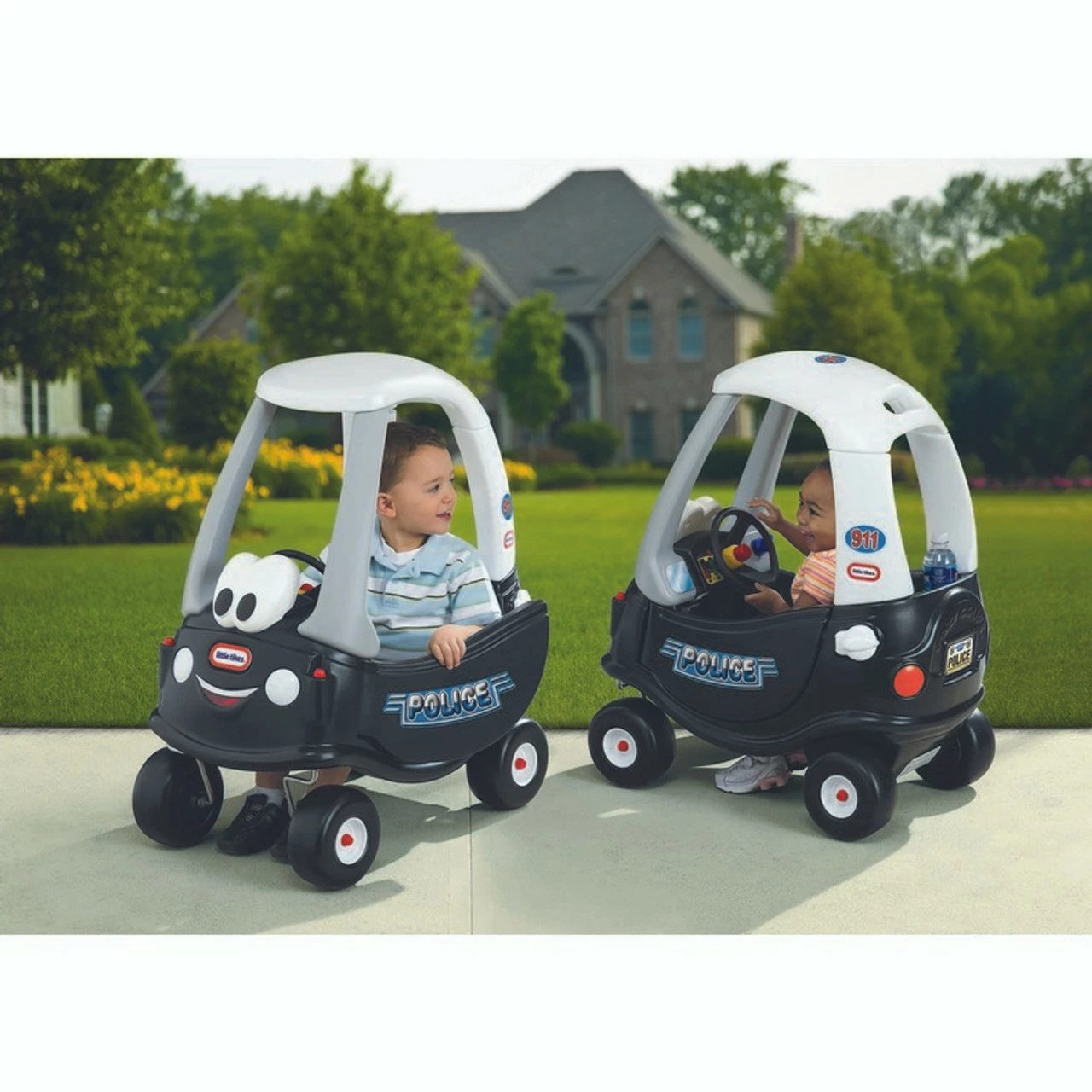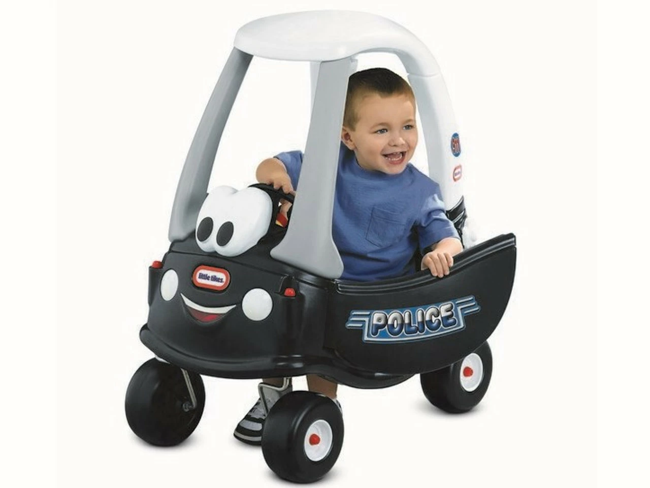 This kids police car has a whole new look. A fun police-car theme creates a new world of imagination and pretend with this Cozy Coupe riding toy. Kids love the working door and foot-to-floor movement. It’s easy for kids to start and stop. Unlike other riding toys, the Cozy Coupe can be used inside or out. The Tikes Patrol Cozy Coupe Car encourages active play, imagination and the development of large motor skills.