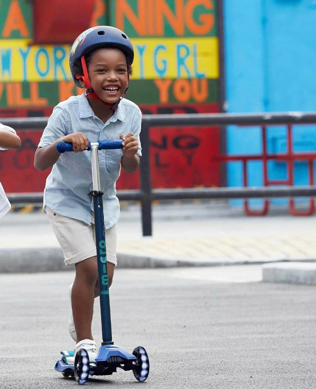 For ages 5-12 years 70kg weight limit LED Wheels Raised silicon non-slip deck Adjustable handlebar height Intuitive lean-to-steer action Superior stability For the brightest kids on the block – say hello to the LED Maxi Micro Scooter. The ultimate kids scooter has rolled in with LED wheels which light up when you scoot. These motion-powered LED wheels generate light through dynamo mechanics. Which means there is no need to worry about replacing batteries or the lights going out. An exciting addition to the Maxi Micro Deluxe you already know and love. The 3 wheel Maxi Micro Deluxe LED is a fun and exciting new step for kids who have out grown their Mini Micro Deluxe. The adjustable handle bar allows the scooter to grow with your children through the early school years safely with an anodised T-bar, extra grip silicone injected deck with the weight limit of 70kgs. This scooter has a lean-to-steer system that allows kids to surf the turf whilst developing their stability.