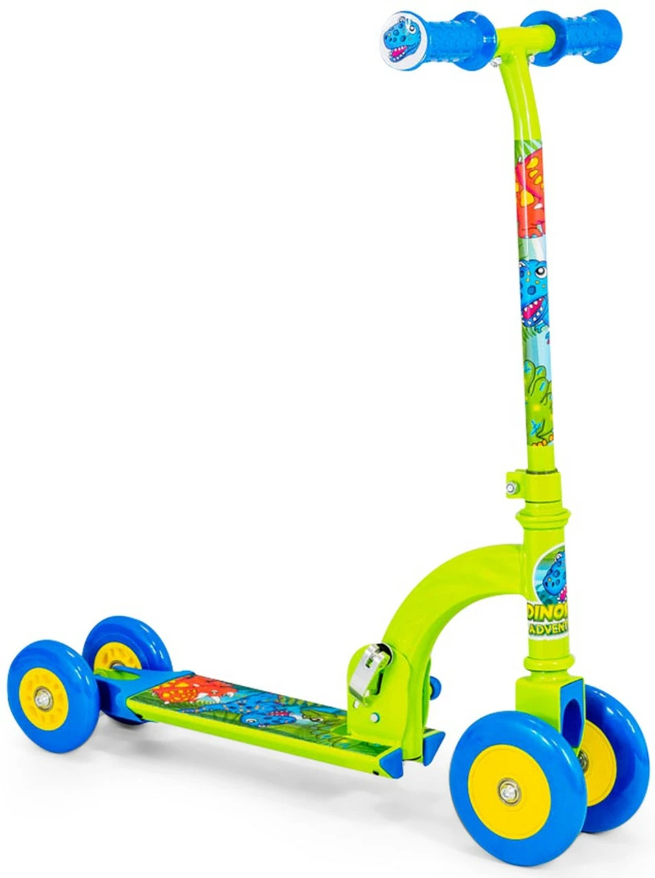 Four-wheeled dinosaur scooter that is perfect for beginners. The stability afforded by the four wheels placed in two sets, side-by-side, is ideal for children who want to learn how to scoot. What’s more, when their confidence has grown it can be converted into a two-wheeled scooter, allowing them to use it for even longer. This amazing two-in-one scooter also features a convenient folding design, allowing it to be stored or transported with absolute ease.