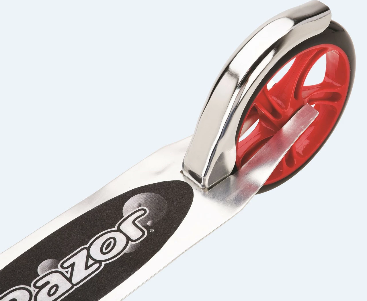 The Razor A5 Lux joins a kick scooter line well-known for its smooth ride, extra-large urethane wheels and cool profile make for the smoothest ride around. Anodized finish features bold colors and attention-grabbing graphics. Quick and easy to fold and ready to go, the Razor A5 Lux has a superstrong aluminum t-tube and large deck to comfortably support riders up to 100 kg.