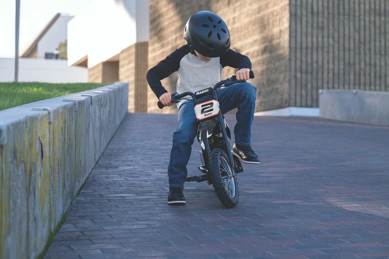 Turn up the off-road fun with a twist of the throttle on the Razor Dirt Rocket MX125. Razor’s smallest electric-powered dirt bike, the MX125 is designed to help riders ages 7 and up build confidence on dirt, delivering top-notch, electric-powered performance with authentic motocross-inspired style that will get kids hooked on the excitement and adventure of off-road riding.