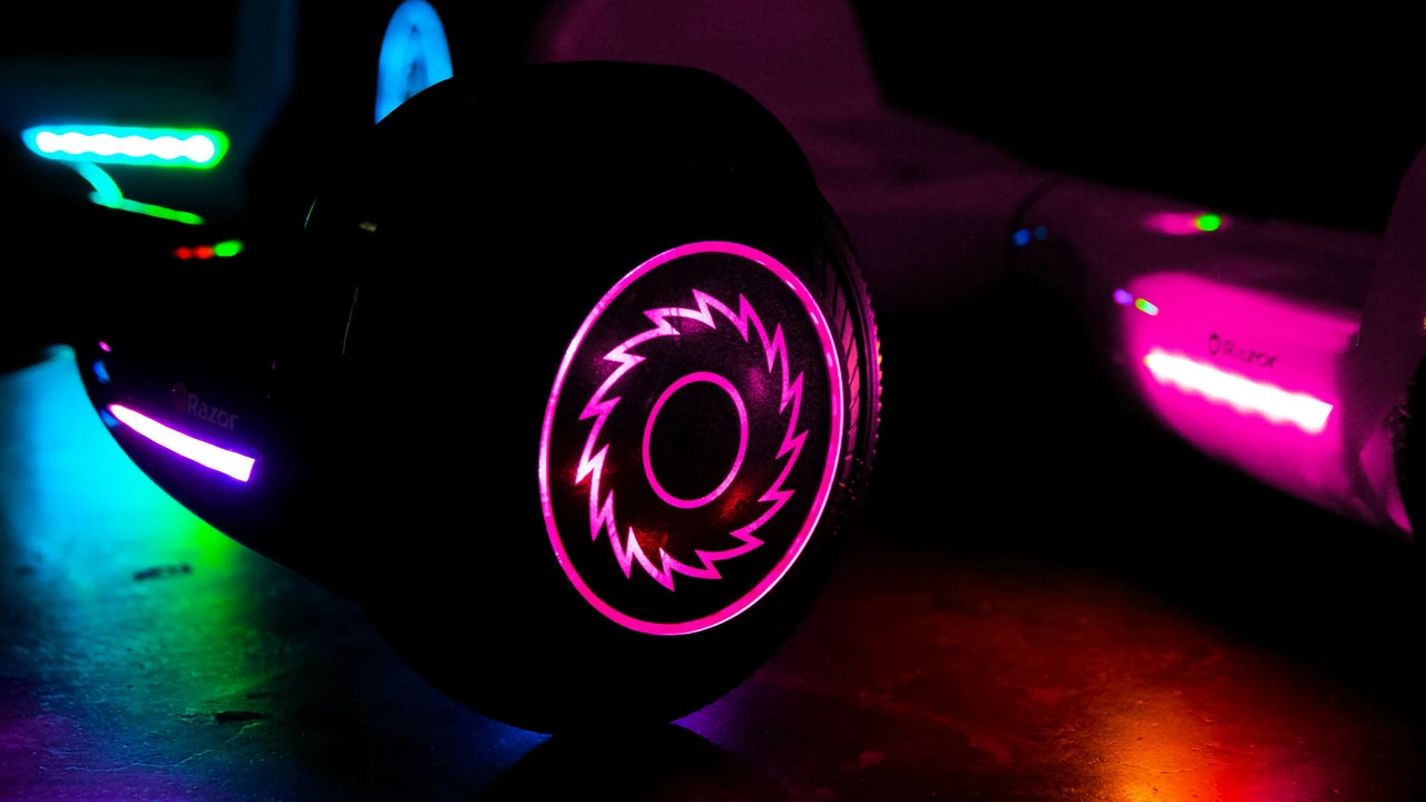 - Wheels: Rubber with aluminum, multi-color LED-lighted hubs