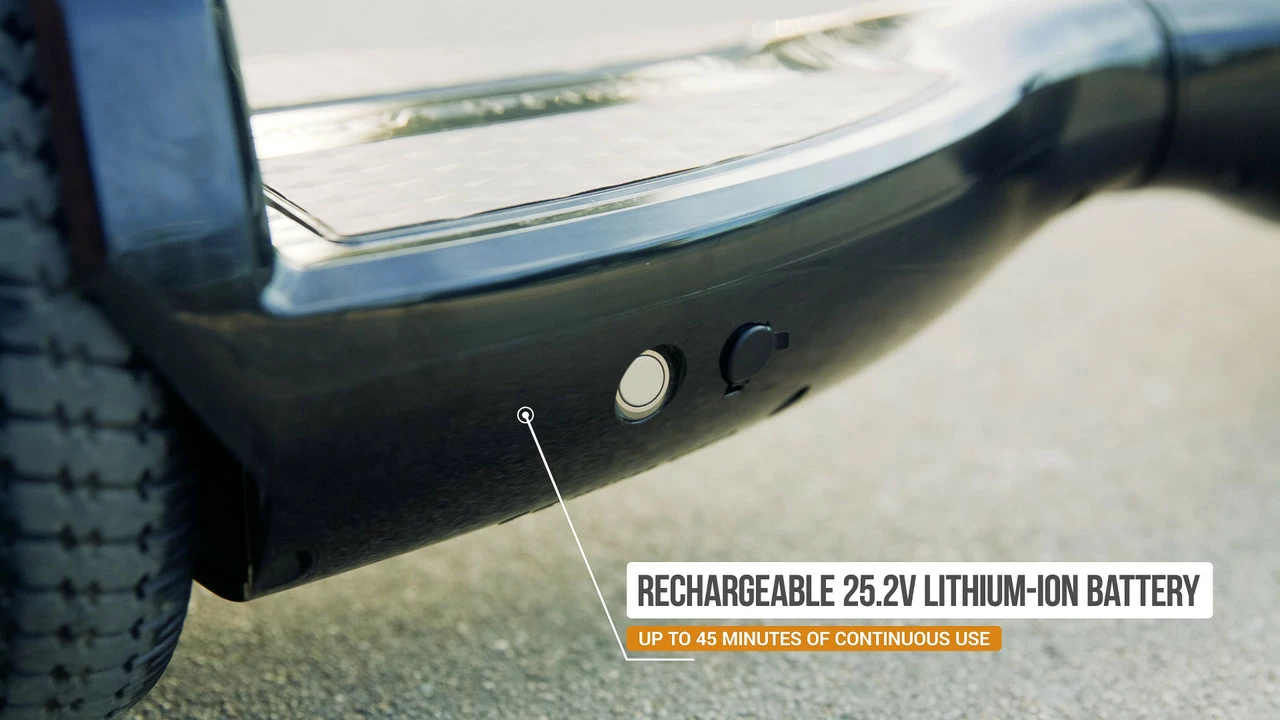 • Electric-Powered Fun – Reach speeds up to 14.5 km/h with dual 150-watt brushless hub motors and up to 40 minutes of continuous fun on a single battery charge.