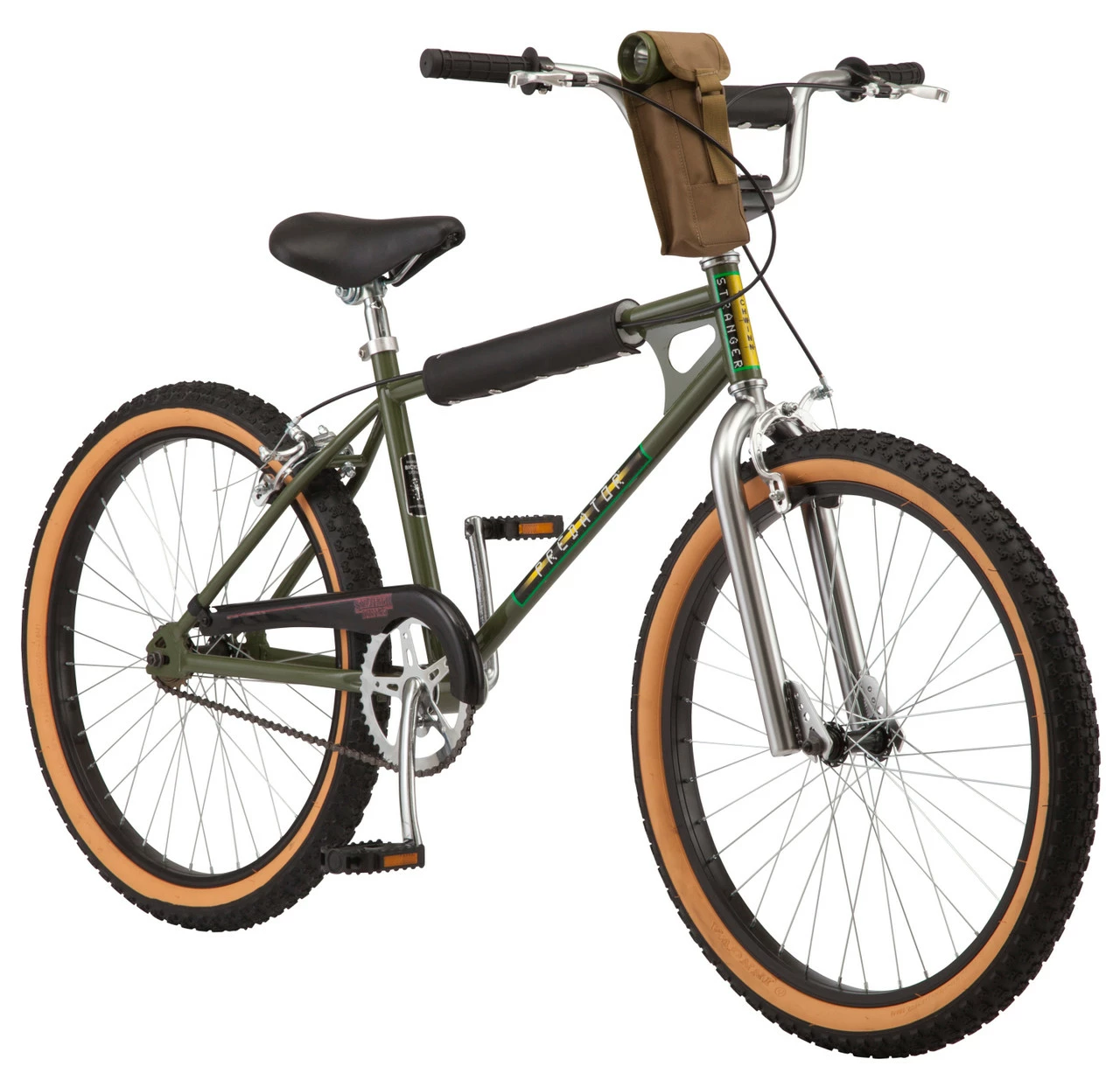 Modelled from the bicycle that Lucas Sinclair rides in the third season of the show, this bike features classic design inspired by the 1980s Schwinn 24” Predator bike with Classic gum-wall knobby BMX tyres and retro BMX grips. It also has front and rear brakes. Schwinn Stranger Things BMX Bike is also highlighted with it’s Schwinn classic ‘80s BMX padset, removable custom pouch and flashlight just like on the show. Now get ready to hit the streets with the Schwinn Stranger Things BMX Bike and revel in great escapades. It’s a limited edition bike so secure one straightaway!