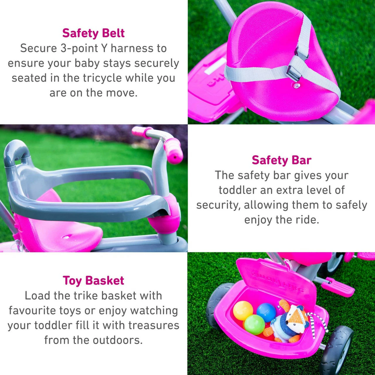 Stage 3 : Adventure and exploration. Remove the parent handle so your little adventurer can explore the outdoors on a fully independent toddler tricycle.